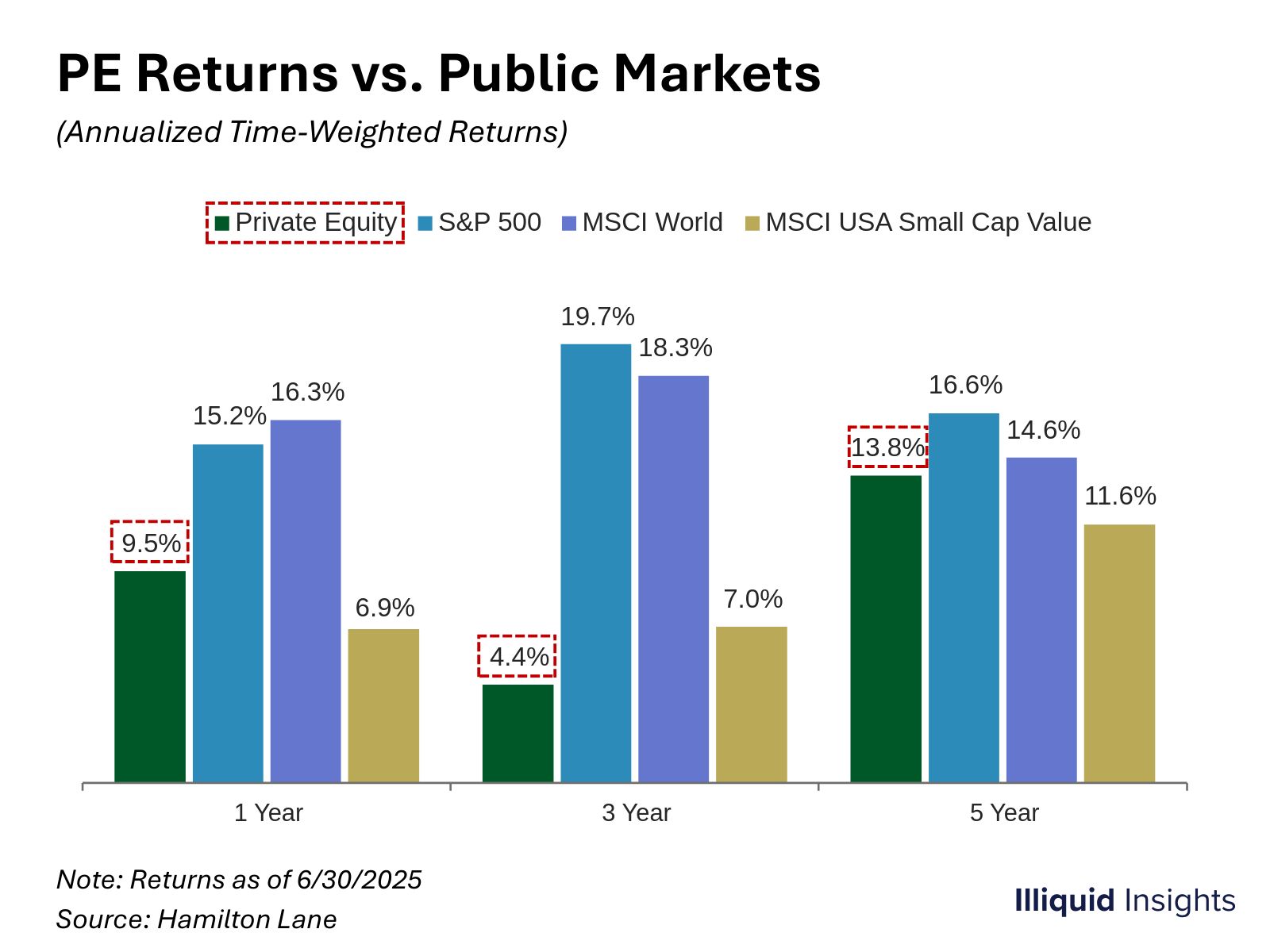 This is a sharp break from prior decades, when PE consistently beat out public equities.