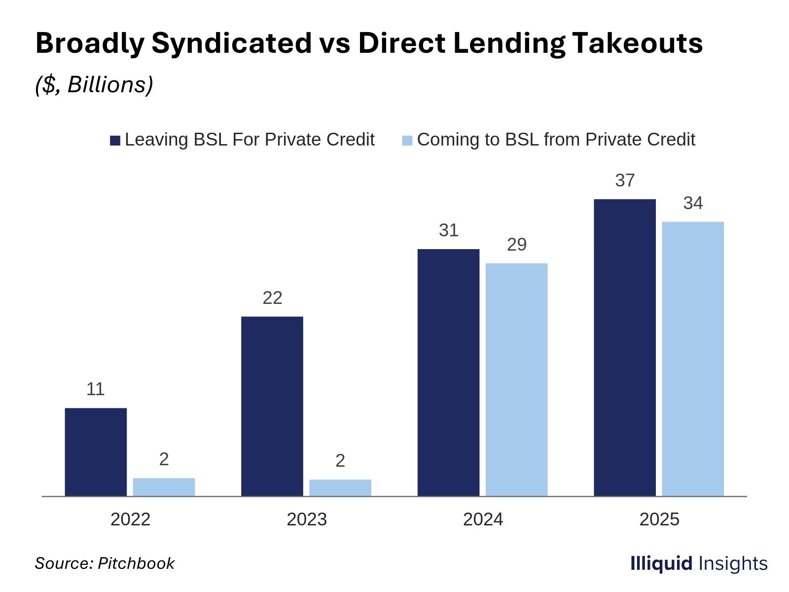 Refinancings from private credit to the BSL market have jumped since 2024.